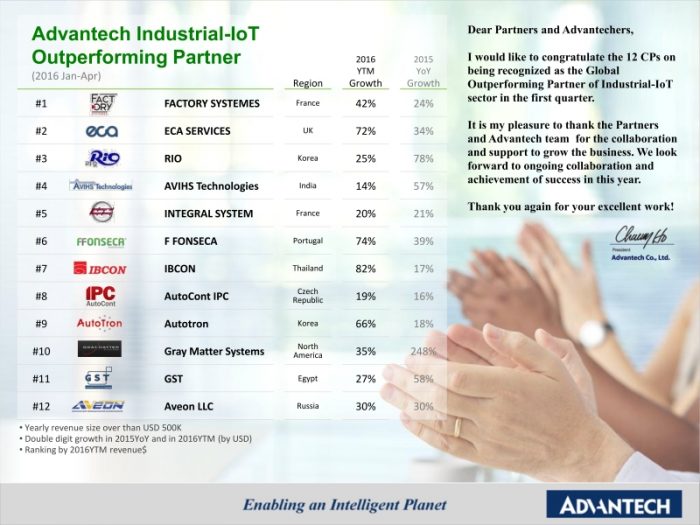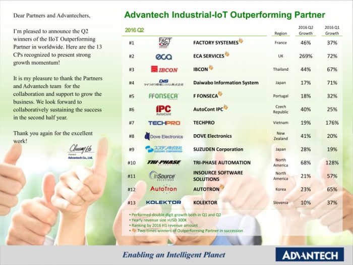 rádi bychom Vám oznámili, že jsme od našeho hlavního partnera, společnosti Advantech, získali tento rok již podruhé významné celosvětové ocenění Advantech Industrial-IoT Outperforming Partner a to především díky růstu v sektoru průmyslového Internetu věcí. Tento růst je důkazem toho, že si stále více tuzemských firem uvědomuje potenciál odvětví IoT a celého konceptu Industry 4.0 a díky reálným přínosům a našim zkušenostem se na nás neváhají při implementaci obracet.