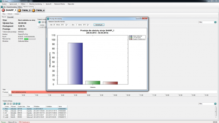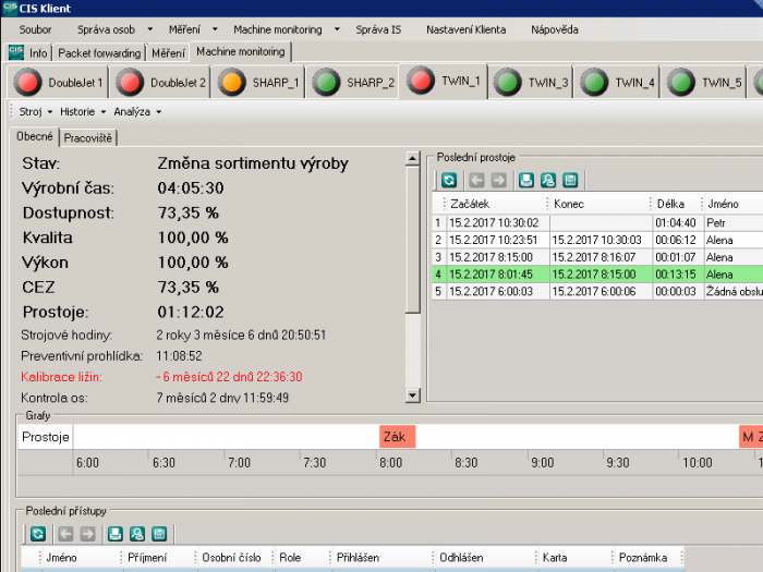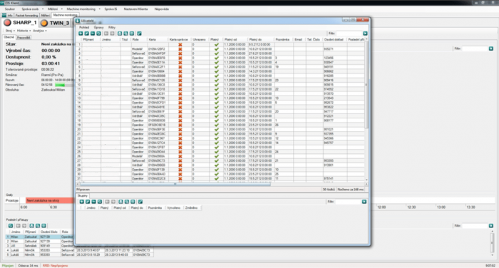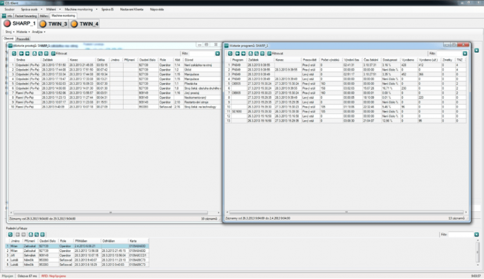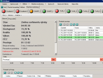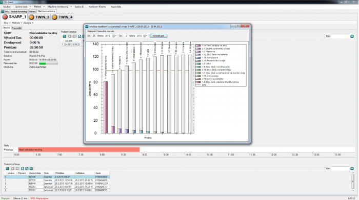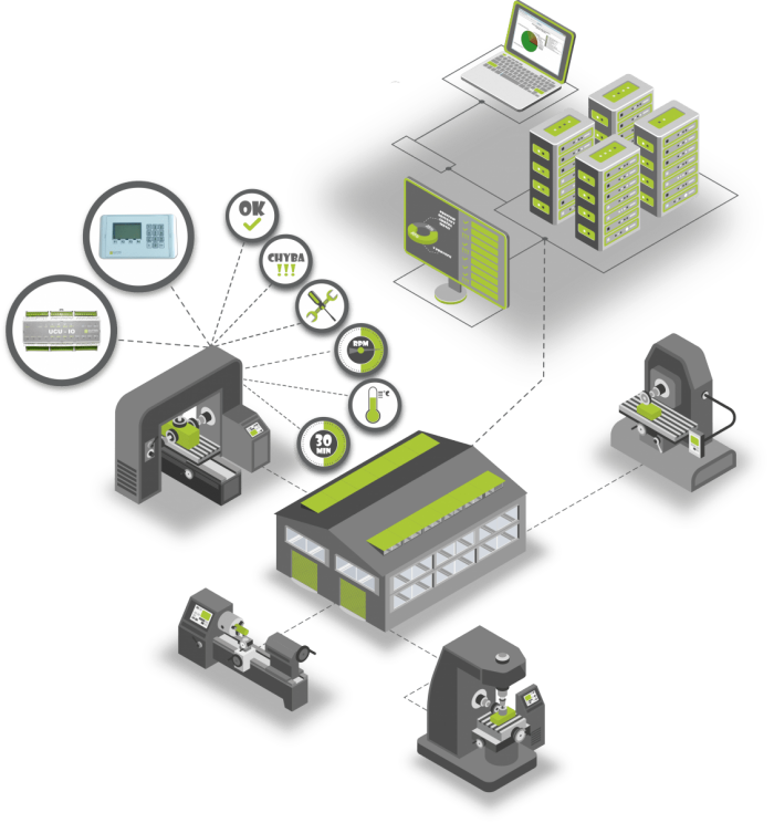 Systém MS – Monitoring Strojů vám umožňuje v reálném čase sledovat stavy strojů a výrobních linek. Vidíte tak různé provozní stavy strojů, výrobní a nevýrobní časy, příčiny prostojů, cyklové časy a délky časů seřízení. Rovněž lze data analyzovat a exportovat historická data pro další analýzy. Pomocí tohoto systému lze také sledovat docházku zaměstnanců a jejich přítomnost na pracovišti (u stroje).