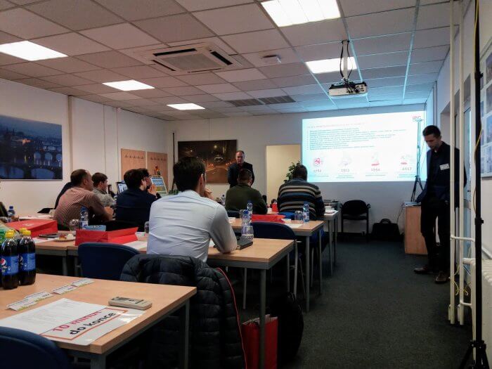 V průběhu přestávek mezi bloky si mohli zákazníci prohlédnout a vyzkoušet vystavené produkty a diskutovat nad tématy z prezentací či pokládat dotazy směrem k vystaveným produktům. Během celého semináře bylo pro zákazníky samozřejmě připraveno chutné občerstvení a po skončení semináře jsme se spolu se zákazníky vypravili do pár kroků vzdálené restaurace na pozdní oběd. Kromě sytého žaludku a hlavy plné nových, zajímavých a přínosných informací si s sebou zákazníci rovněž odnesli i malý dárek.