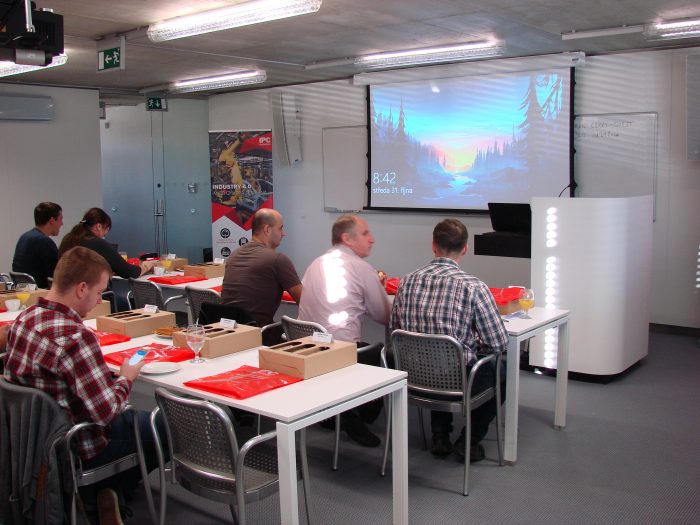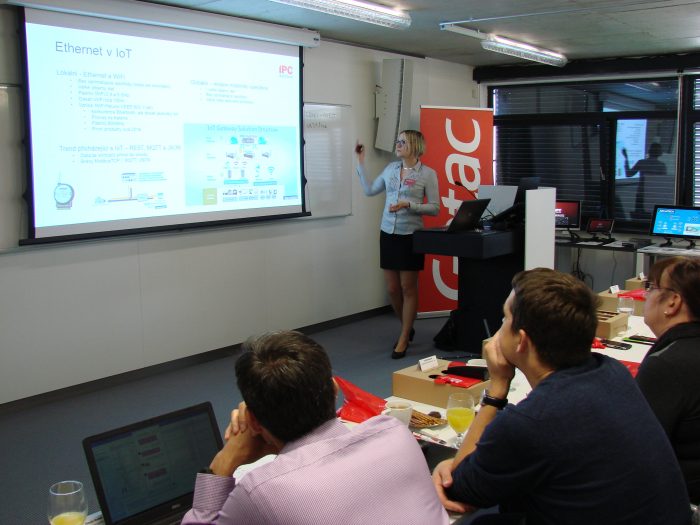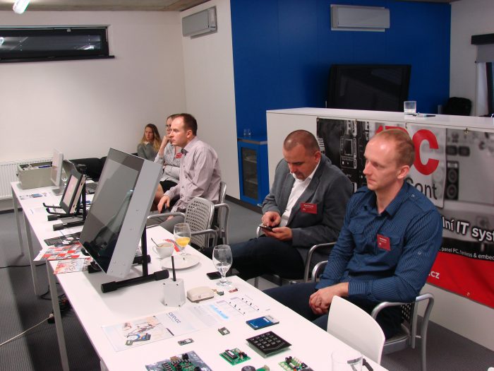 První blok se týkal různých technologií používaných pro identifikaci, lokalizaci a sledování pohybu zboží, materiálu a osob. V druhém bloku byli účastníci seznámeni s výrobním, řídicím a vizualizačním systémem iMPROVE iT! od našeho partnera, ostravské společnosti SCADA Servis s.r.o. Účastníkům byly na názorných ukázkách představeny možnosti využití tohoto systému v praxi. Po krátké občerstvovací pauze následoval třetí blok zaměřený na průmyslový Internet věcí a na to, co zákazníkům dokážeme v této oblasti nabídnout. V posledním, čtvrtém bloku jsme návštěvníkům představili naše některé zajímavé projekty a realizace, včetně ukázek námi na zakázku vyvíjených a vyráběných zařízení.